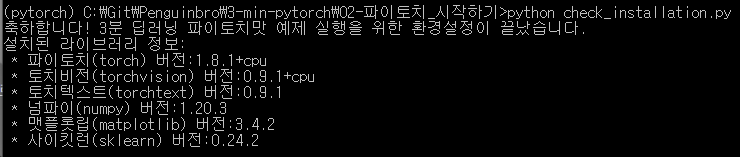 $ pip install torchtext6. numpy, matplotlib, scikit-learn 설치
