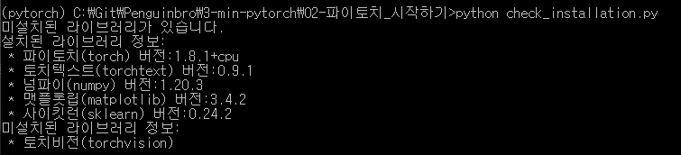 보통은 이명령을 실행하면서 torchvision이 다운로드 되어야하는데 왜 인지는 잘 모르겠다.