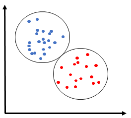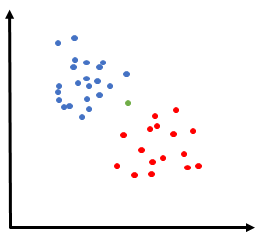 아래의 데이터에 새로운 초록색 데이터가 들어왔을 때, 어떤 집단에 속하는지 정해야 한다. 이 과정을 분류(classification)라고 한다.