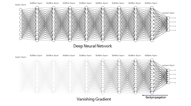 0에 가까워진 값을 계속해서 역전파를 해 나가면 값이 계속 작아져 Vanishing Gradient Problem이 발생한다.